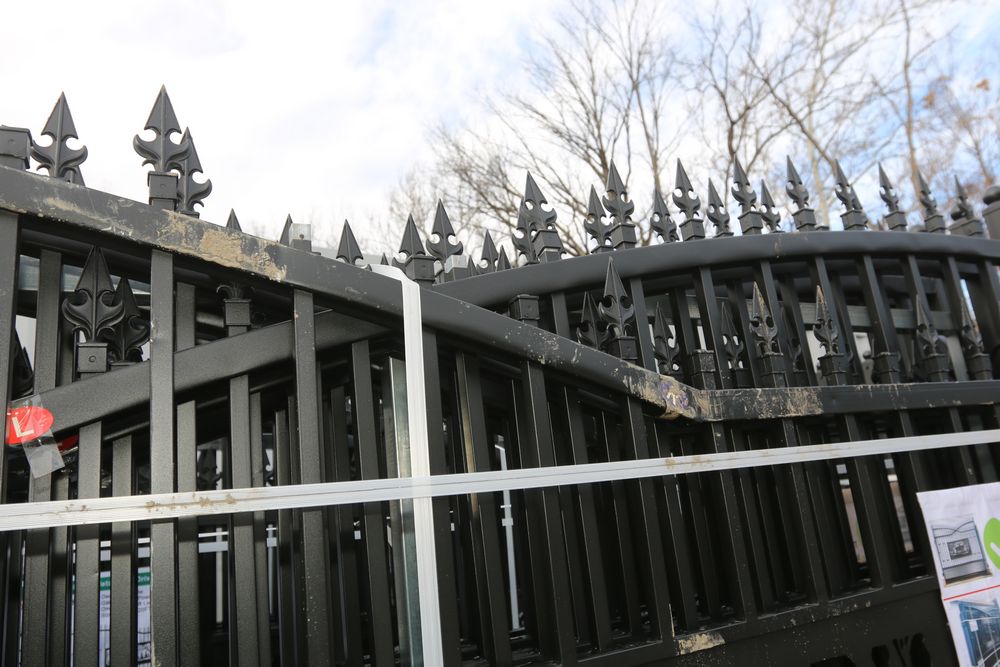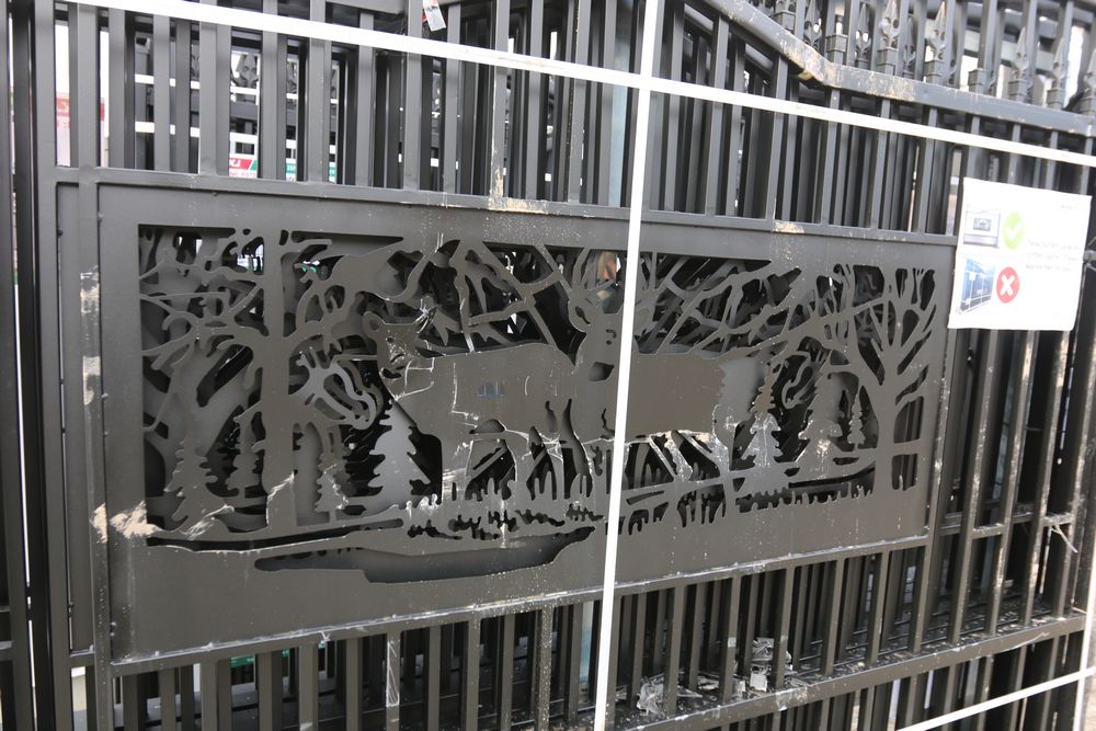 New 2025 KJ 20 foot Bi-Parting Iron gate 7 foot tall x 20 feet long two pcs total, Model K0720. See photos for damage.
