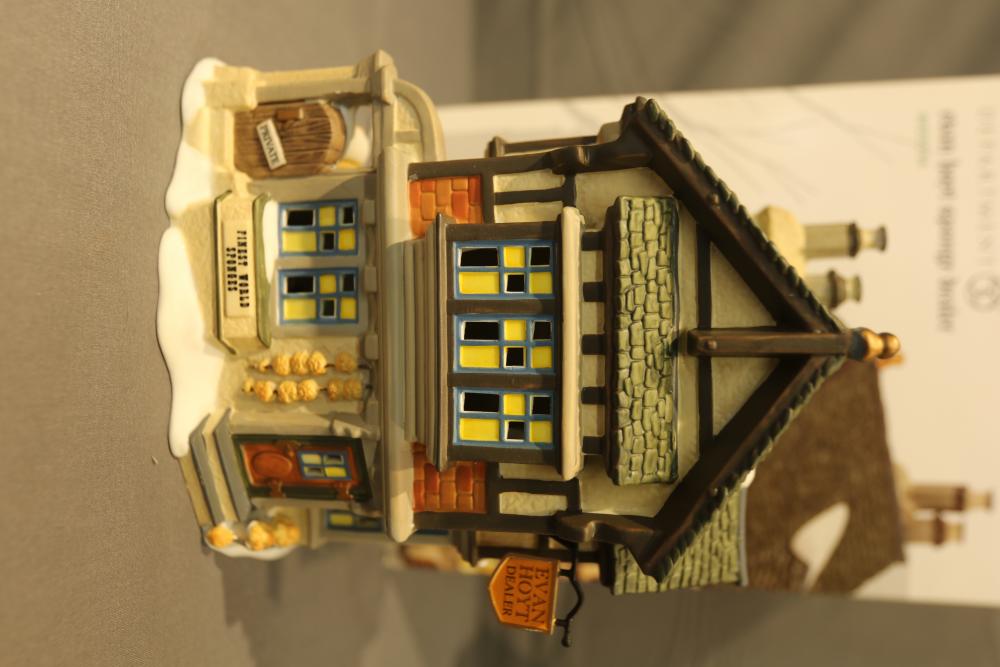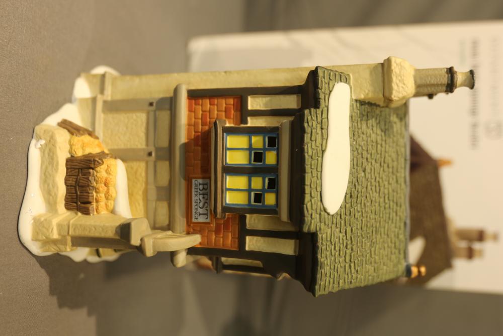 Items are Department 56 Dickens Village Series Buildings & Accessories from one collector. Items include "Stratford Holiday Pies and Tarts"; "Tegan's Toy Shoppe," "Burwickglen Golf Clubhouse," illuminated buildings: Brandon Mill, Devonshire Creamery," "Boar's Bacon & Candied Hams"; Porcelain Buildings & Accessories. Includes "A Christmas Carol" series: "M Fezziwig Warehouse," "Scrooge & Marley," Heritage Village Figurines & Accessories. Includes various figurines like "Not too Fast, Please," "Town Blacksmith," "To the Manor Born"; Village Series and Village Accessories Figurines. Includes "Buyer one for Prosperity," "Backyard Bird Houses,"; holiday decorations: snowmen figurines, holiday-themed trees, Christmas lights & more. Items are located in Pleasant Valley, NY.