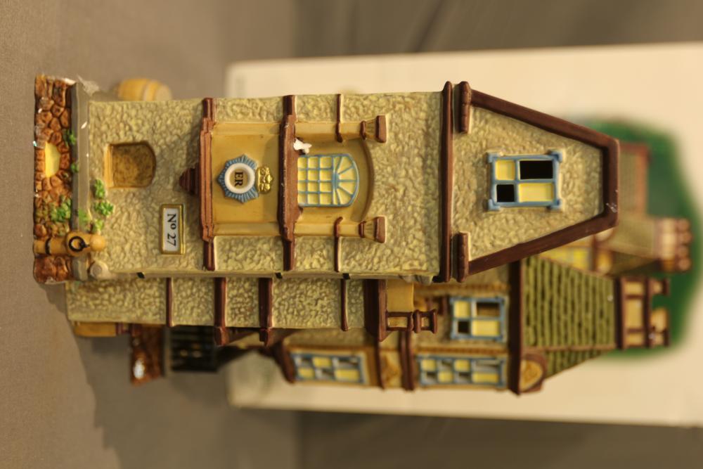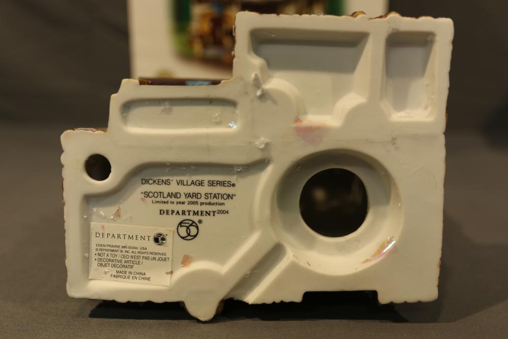 Department 56 Dickens Village Buildings. Includes "Scotland Yard Station," "J. Horsley Christmas Cards," and "E. Tipler Agent for Wine & Spirits." with original boxes. Conditions may vary.