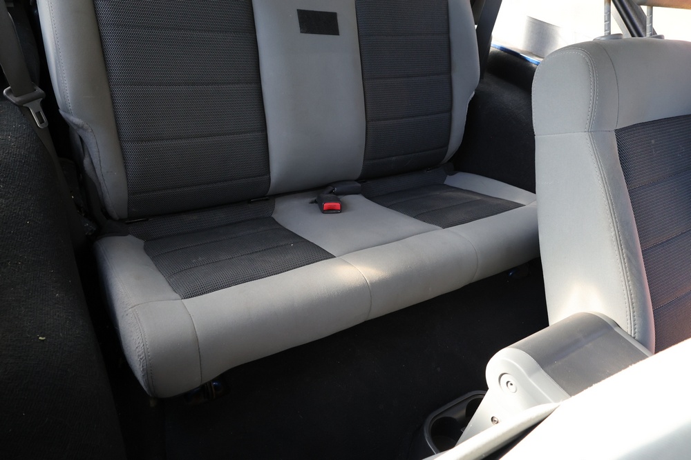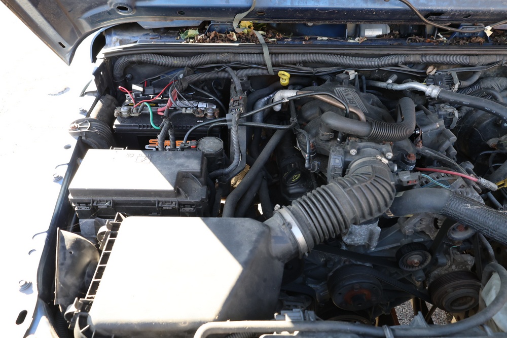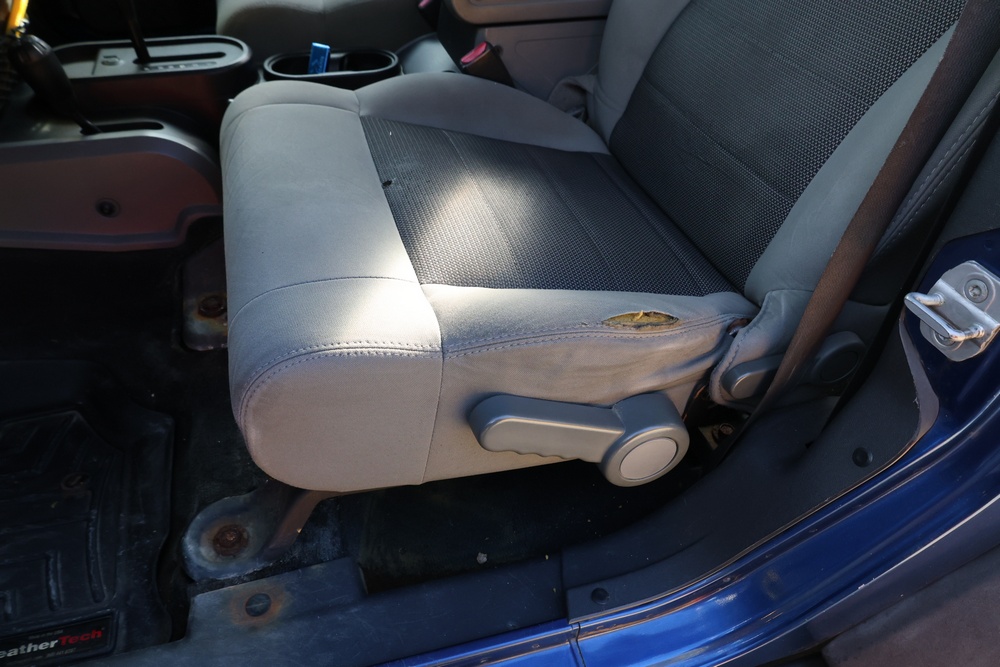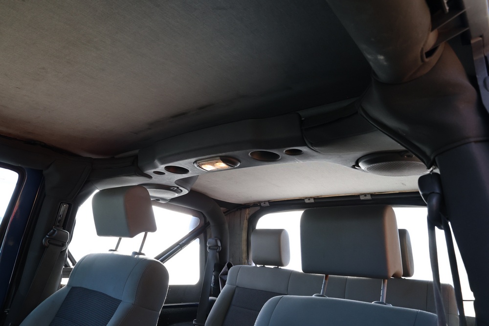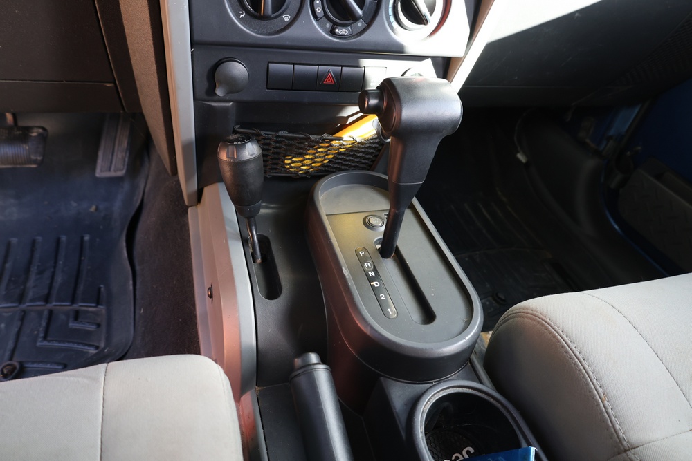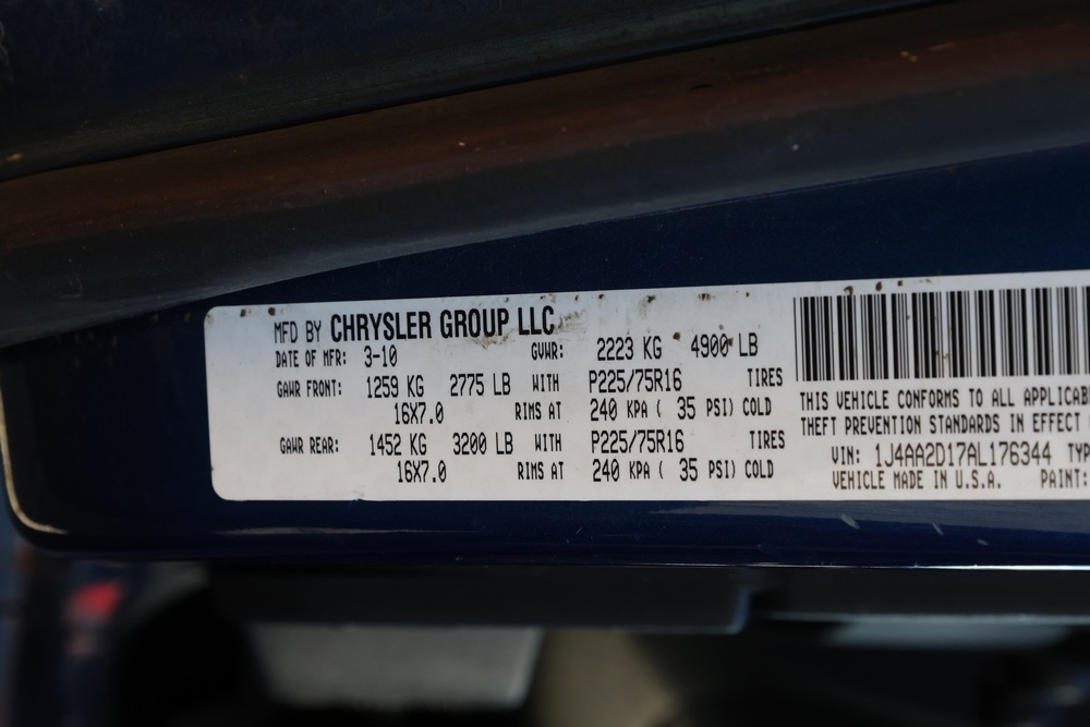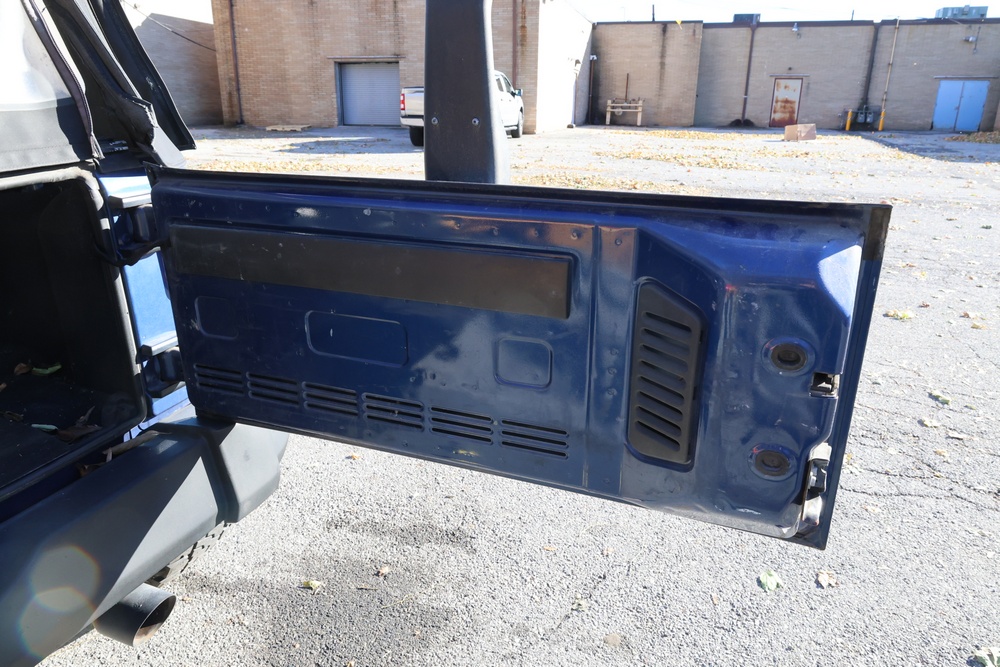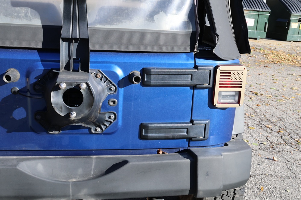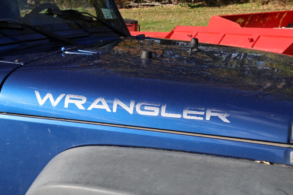 2010 Jeep Wrangler Sport 4x4 two-door SUV with automatic transmission. VIN: 1J4AA2D17AL176344. Odometer reading: 145,502. Exterior: Blue with black aftermarket front bumper, hood latches, soft top, light bar, and large off-road tires mounted on black wheels. Interior: Gray and black front bucket seats, center console, automatic shifter, and standard dashboard with factory gauges. Tire size: P225/75R16. Additional equipment includes light bar, custom front bumper with D-rings and fog lights, side steps, and "Trail Rated" and "JK Sport Wrangler" decals. Title and key available. Seller reports: Runs and drives, motor replaced approx. 500 miles ago.