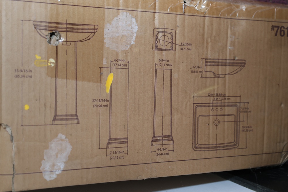 Allen and Roth pedestal bathroom Sink with square white finish number 76118. New in box.