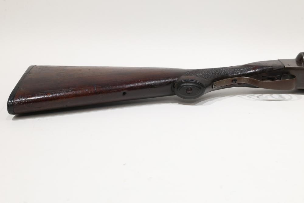 Ithaca Gun Co. double-barrel shotgun chambered in 12 gauge, featuring blued Krupp Fluid Steel barrels and checkered wood stock. Side-by-side configuration with double triggers. Serial number 226943. All lots are subject to all applicable laws at the time of transfer. NOTE: Semi automatic rifles and all handguns require a license in NYS. There is a $35 transfer fee per long gun. There is a $40 transfer fee per hand gun. There is a $20 transfer fee per ammunition lot. If you fail the background check, the transfer fee still applies, and you are still required to make payment and then reconsign the lot to auction. FFL dealers are not exempt from these fees. A background check will be required for all buyers purchasing a firearm and/or ammunition. NYS charges a background check fee for all firearms and ammunition. The fee is $9 for firearms and $2.50 for ammunition. The NYS fee is per background check NOT per lot, will be collected directly by Civil Armory, and is in addition to any transfer All lots are subject to all applicable laws at the time of transfer. NOTE: Semi automatic rifles and all handguns require a license in NYS. There is a $35 transfer fee per long gun. There is a $40 transfer fee per hand gun. There is a $20 transfer fee per ammunition lot. If you fail the background check, the transfer fee still applies, and you are still required to make payment and then reconsign the lot to auction. FFL dealers are not exempt from these fees. A background check will be required for all buyers purchasing a firearm and/or ammunition. NYS charges a background check fee for all firearms and ammunition. The fee is $9 for firearms and $2.50 for ammunition. The NYS fee is per background check NOT per lot, will be collected directly by Civil Armory, and is in addition to any transfer