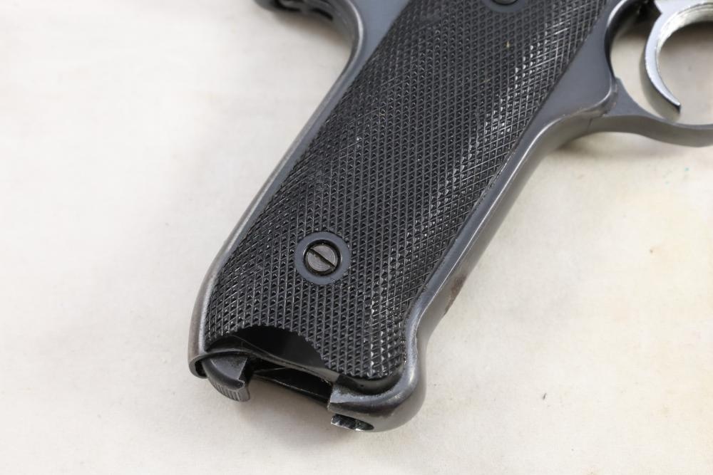 Ruger semi-automatic pistol chambered in .22 Long Rifle, with checkered black synthetic grips; accessories include two extra magazines, the original box, and paperwork. Serial Number 10-19085. All lots are subject to all applicable laws at the time of transfer. NOTE: Semi automatic rifles and all handguns require a license in NYS. There is a $35 transfer fee per long gun. There is a $40 transfer fee per hand gun. There is a $20 transfer fee per ammunition lot. If you fail the background check, the transfer fee still applies, and you are still required to make payment and then reconsign the lot to auction. FFL dealers are not exempt from these fees. A background check will be required for all buyers purchasing a firearm and/or ammunition. NYS charges a background check fee for all firearms and ammunition. The fee is $9 for firearms and $2.50 for ammunition. The NYS fee is per background check NOT per lot, will be collected directly by Civil Armory, and is in addition to transfer fees. All lots are subject to all applicable laws at the time of transfer. NOTE: Semi automatic rifles and all handguns require a license in NYS. There is a $35 transfer fee per long gun. There is a $40 transfer fee per hand gun. There is a $20 transfer fee per ammunition lot. If you fail the background check, the transfer fee still applies, and you are still required to make payment and then reconsign the lot to auction. FFL dealers are not exempt from these fees. A background check will be required for all buyers purchasing a firearm and/or ammunition. NYS charges a background check fee for all firearms and ammunition. The fee is $9 for firearms and $2.50 for ammunition. The NYS fee is per background check NOT per lot, will be collected directly by Civil Armory, and is in addition to transfer fees.