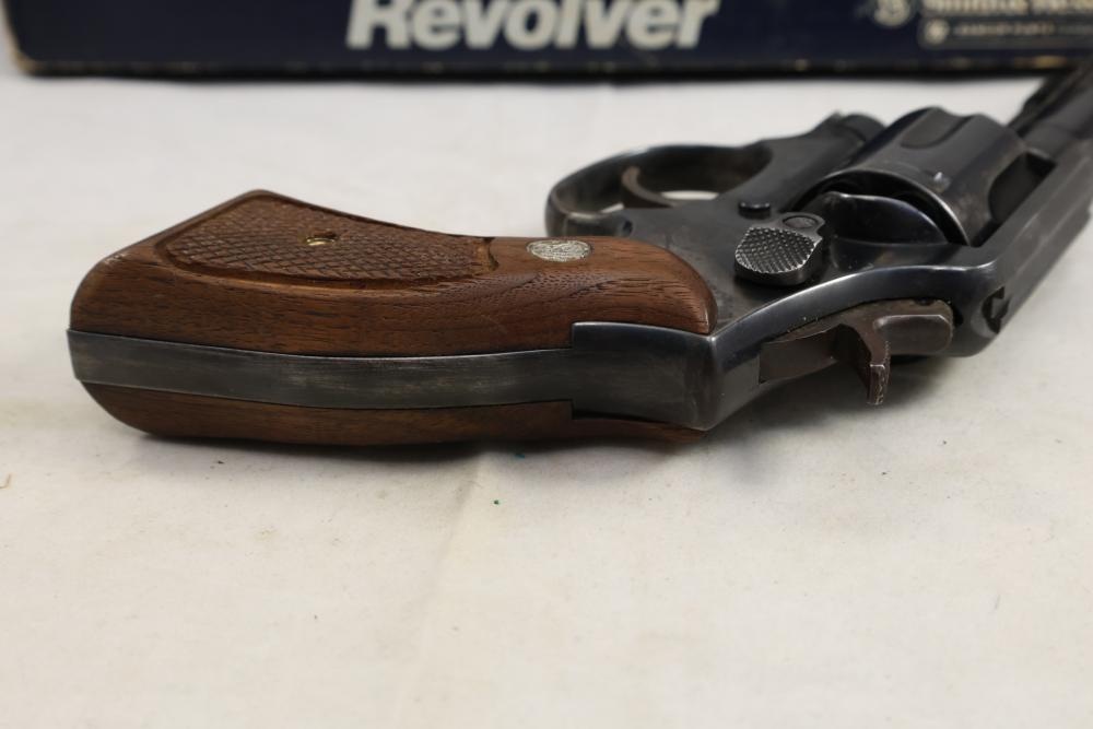 Smith & Wesson Model 10-8 revolver chambered in 38 S.&W. SPECIAL CTG. with checkered wood grips and an additional synthetic grip plus the factory box, serial number ACW9666. All lots are subject to all applicable laws at the time of transfer. NOTE: Semi automatic rifles and all handguns require a license in NYS. There is a $35 transfer fee per long gun. There is a $40 transfer fee per hand gun. There is a $20 transfer fee per ammunition lot. If you fail the background check, the transfer fee still applies, and you are still required to make payment and then reconsign the lot to auction. FFL dealers are not exempt from these fees. A background check will be required for all buyers purchasing a firearm and/or ammunition. NYS charges a background check fee for all firearms and ammunition. The fee is $9 for firearms and $2.50 for ammunition. The NYS fee is per background check NOT per lot, will be collected directly by Civil Armory, and is in addition to any transfer All lots are subject to all applicable laws at the time of transfer. NOTE: Semi automatic rifles and all handguns require a license in NYS. There is a $35 transfer fee per long gun. There is a $40 transfer fee per hand gun. There is a $20 transfer fee per ammunition lot. If you fail the background check, the transfer fee still applies, and you are still required to make payment and then reconsign the lot to auction. FFL dealers are not exempt from these fees. A background check will be required for all buyers purchasing a firearm and/or ammunition. NYS charges a background check fee for all firearms and ammunition. The fee is $9 for firearms and $2.50 for ammunition. The NYS fee is per background check NOT per lot, will be collected directly by Civil Armory, and is in addition to any transfer