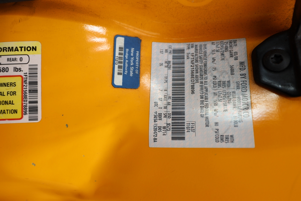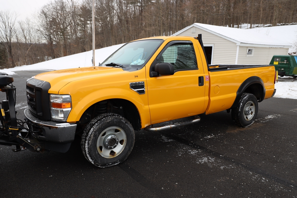 2008 Ford F-250 Super Duty XL Pickup Truck. VIN: 1FTNF21568ED78896. Body: Regular Cab 2D. Engine: 5.4L V8 SMPI Gasoline. Odometer reading: 99160, Hours reading: 6299. Runs, drives. Fisher 8' Snow Plow, 4X4. High Miles, Has check engine light for EVAP leaks, bed mounts are rusted off, door sensors don’t work, replacement passenger door. Title & key available. Location: Mid Hudson.