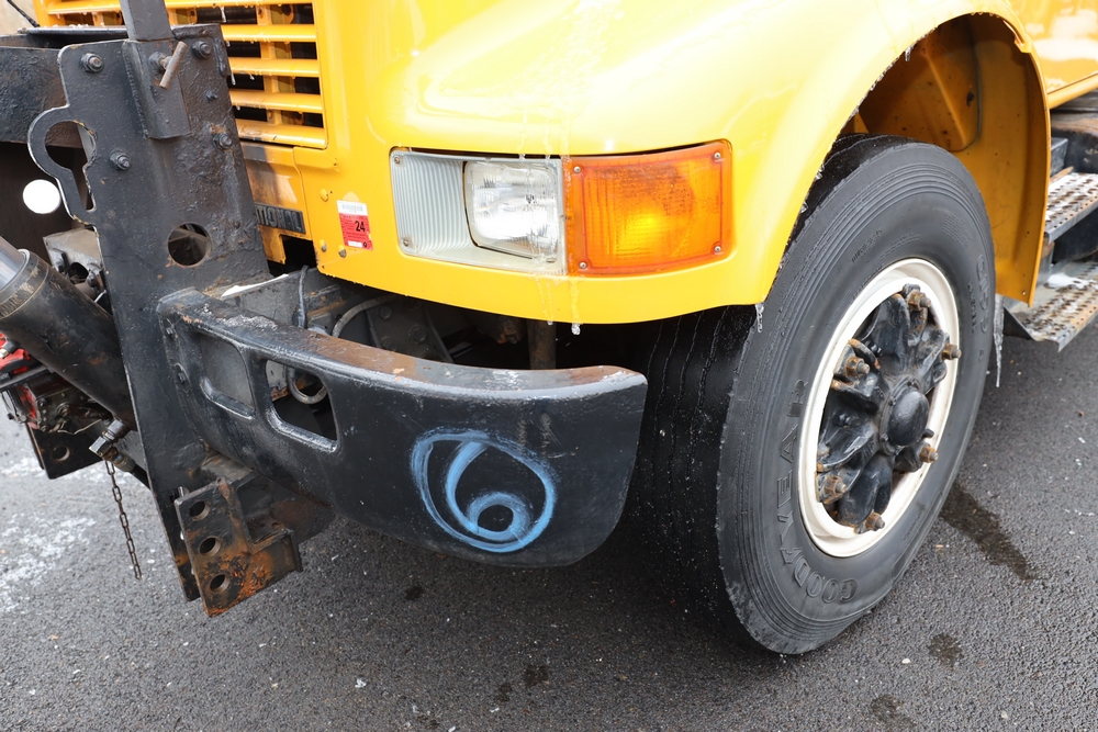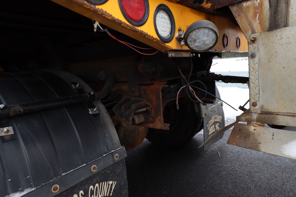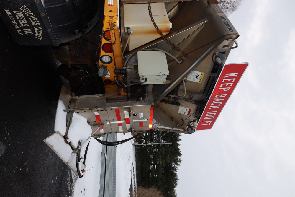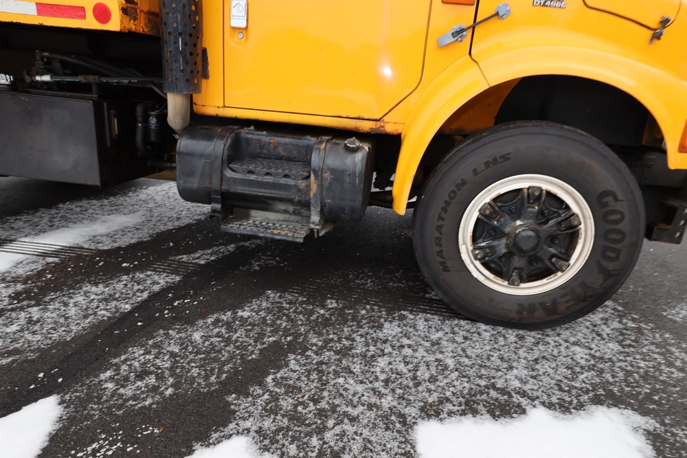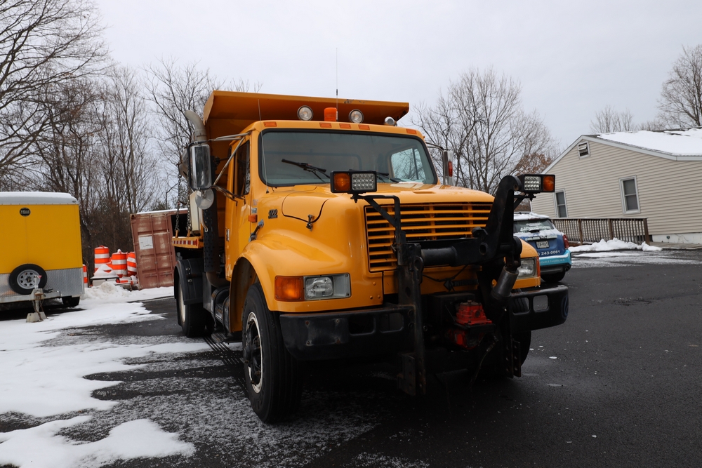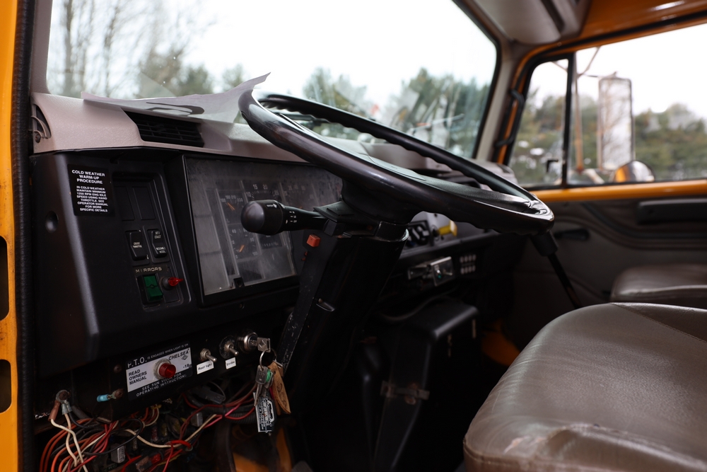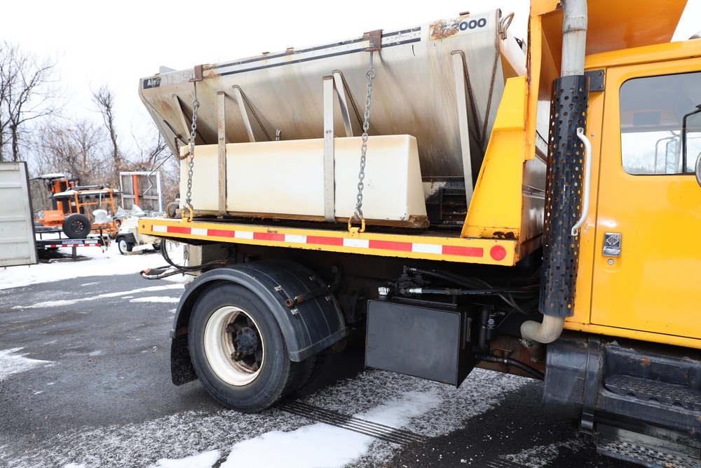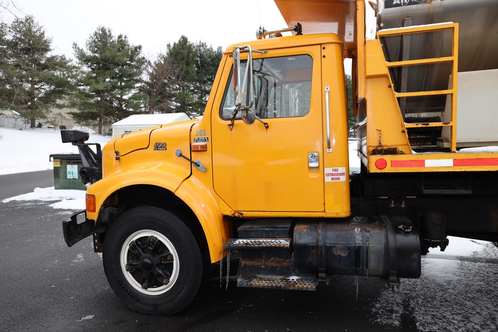 1998 International 4700 dump truck. VIN: 1HTSCAAR7WH509471. Body: Chassis 2D. Engine: 7.6L I6 DI Diesel. Odometer reading: 38902, Hours reading: 5196. Runs, drives. Air Flo Spreader. Front plow lift cylinder sticking and leaking. Title & key available. Location: Mid Hudson.