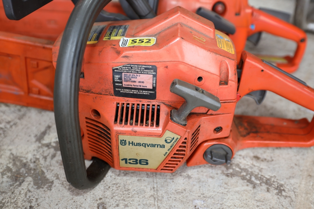 Landscaping equipment including Husqvarna Leaf Vac, and two Husqvarna chainsaws. Seller reports: Haven't been used in years. Location: Mid-Hudson.