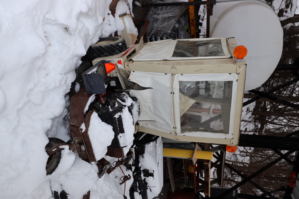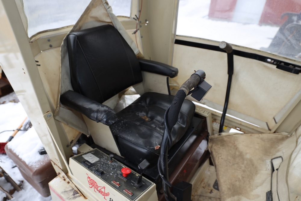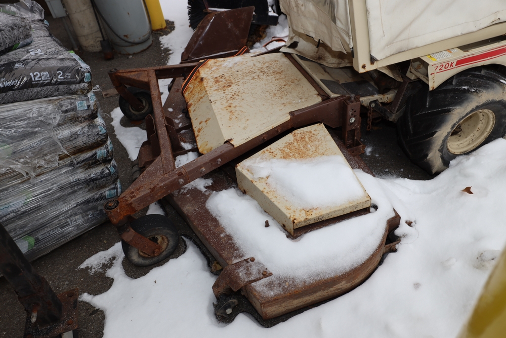 Grasshopper Riding Mower with removable cab and two mower decks. Includes Grasshopper Snow Blower. Seller reports: operational when last used; snowblower attachment was running, needs a motor, partially dissassembled. Location: Rip Van Winkle.