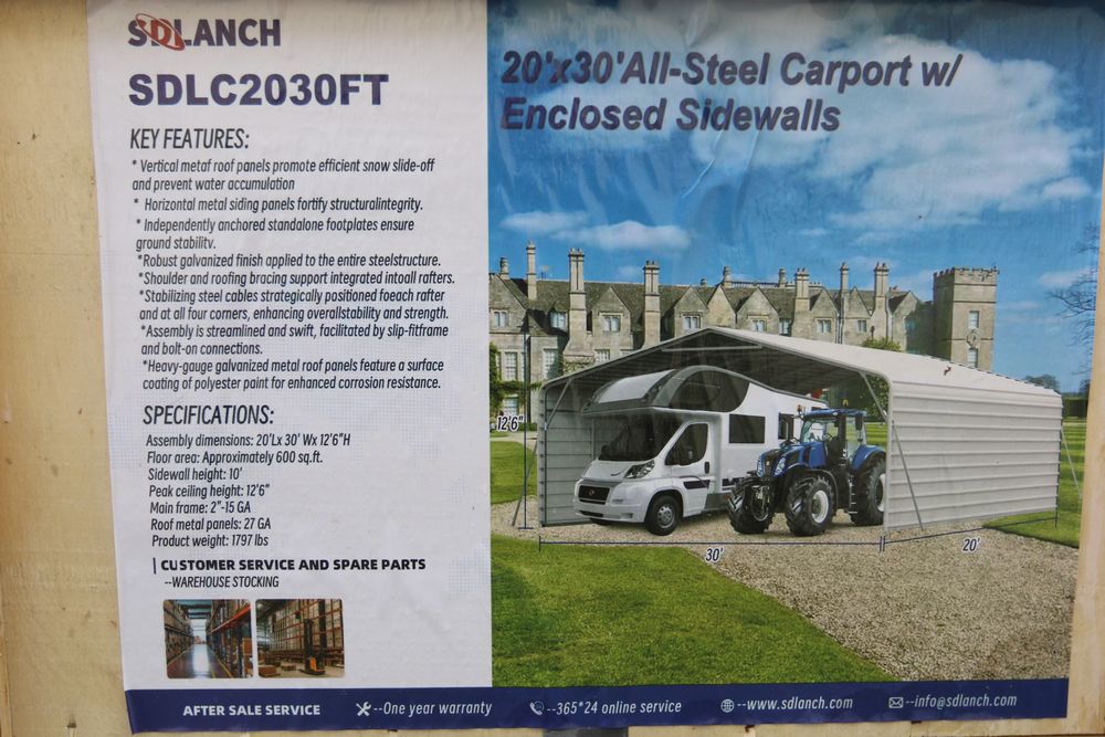Items include new 2025: electric three-wheeled golf cart; IRMC high-end massage chair; tracked dumper; shelves for excavator attachments; IR mini excavator; 20'x30' high-end carport; IR safety traffic cones; ground protection mats; mini skid steer loader; high-end mobile jaw crusher; 60cm toothless bucket for mini excavators; hydraulic thumb for mini excavators; IR dump hopper with wheels & handle; semi-automatic quick connect for mini excavators; Husky HPR063TLOCKERBL black tool lockers & more. Items are located in Pleasant Valley, NY. Preview is highly recommended.