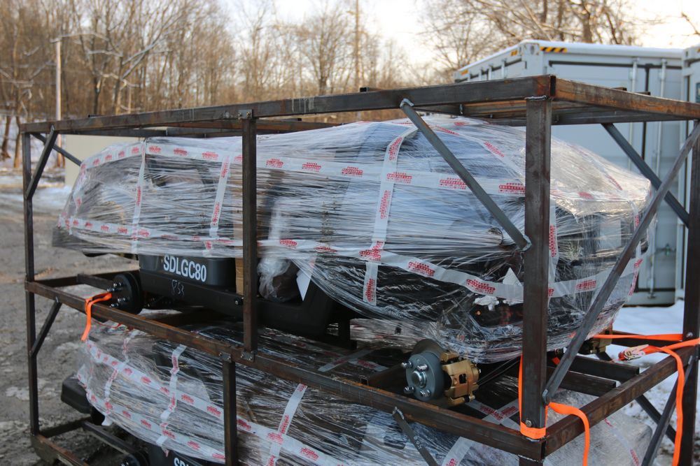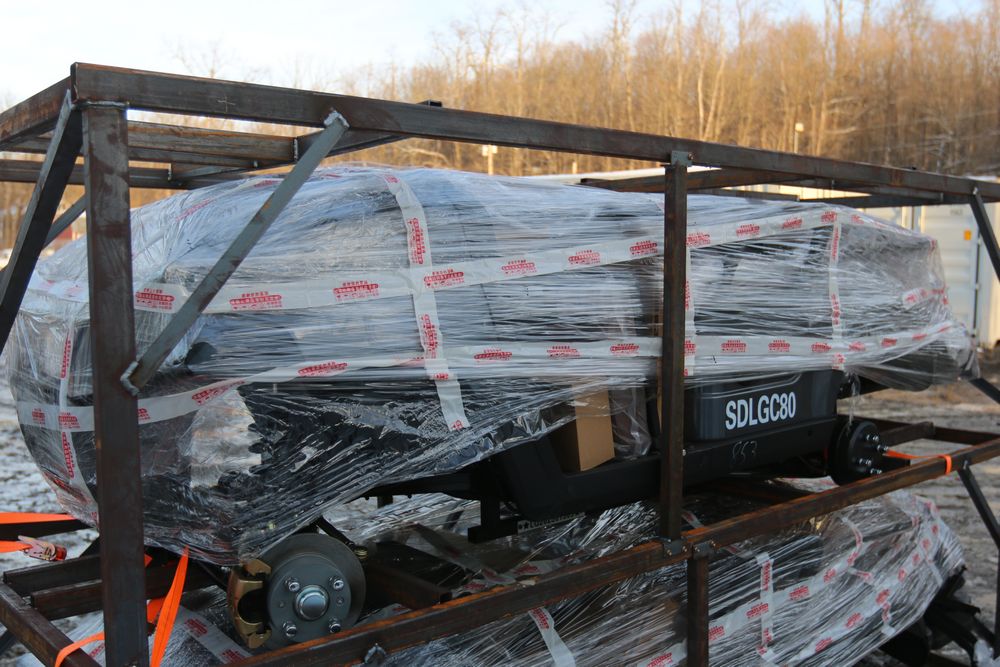 New 2025 IR golf cart model SDLG80, seats four, top speed of 23-24mph, 4KW AC motor, canopy cover, front window, brush guard.. Comes disassembled, appearing to be complete.