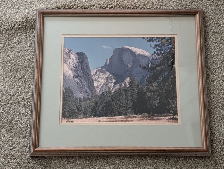 Four Pieces Photographic Art. All pieces wood framed & matted, behind glass: lg'est, 2'Hx29"H; others, ea 18"Wx20"H. Mt. McKinley, & Yosemite Park
