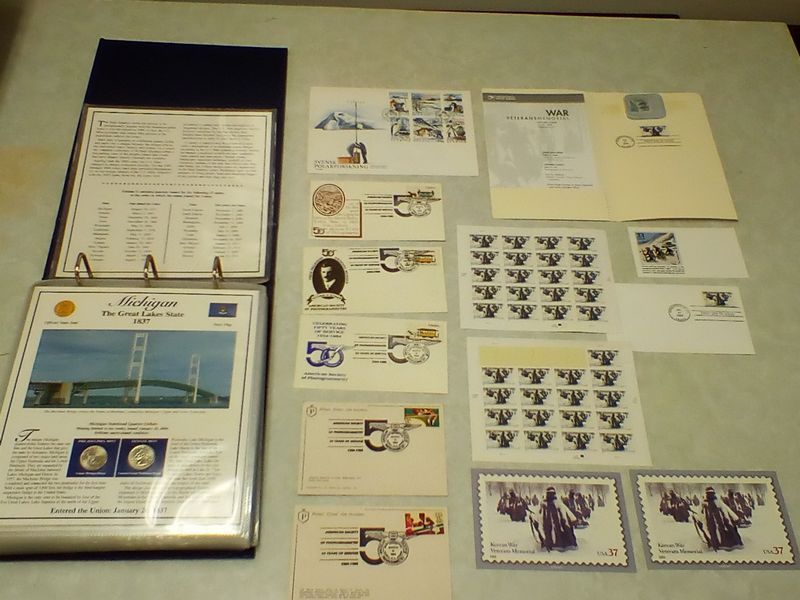 Stamps and Coins. Statehood Quarter Collection, complete volume II (see list of states incl) coin & stamps album; stamps incl: first day covers; 2003 Korean War pack; 1984 Swedish Polar Research; 1984 American Society of Photogrammetry. See photos for more details and qty.