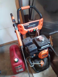 Generac Speedwash Power Washer. Generac 2900 PSI gas speedwash power washer and gas can. See photos. Items seen in background not incl. Loc in garage.
