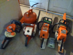 Four Commercial-Grade Chain Saws and Trimmer. Echo HC150 chain saw; Remmington Dupont chainsaw; Stihl 036 Pro chainsaw; Stihl wood boss 024AV chainsaw; Shindaiwa commercial trimmer model #4030027 with 9" bush blade. See photos. Loc in garage.