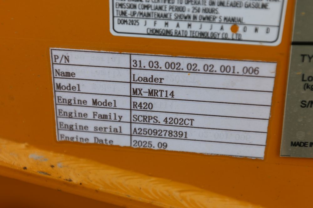 New 2026 AGT Industrial mini track loader model MX-MRT14, RATO 15HP 8.6KW gasoline engine with EPA, bucket. Hours reading less than one hour.