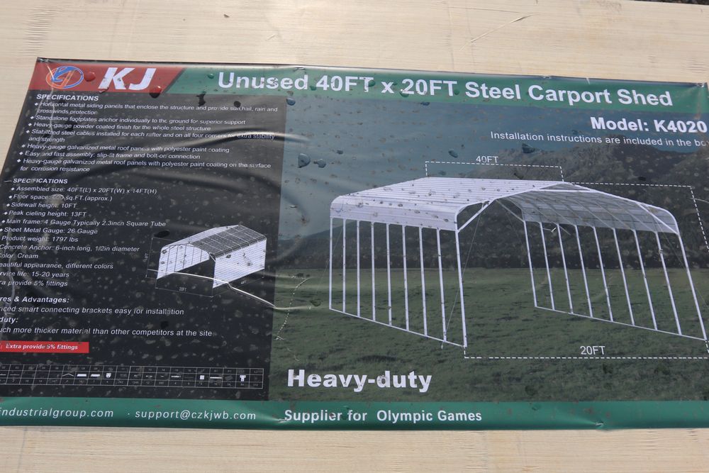 Items include new 2026: 20' container; AGT Industrial mini wheel loader, mini compact wheel loader, mini crawler, portable sawmill, 4-in-1 skid steer bucket, auger, two-post base plater auto lift, seeder; Mower King skid steer brush cutter/trencher/forks, auger; 40' high cube multi-door container; KJ portable restroom, hot-dip galvanized field fence, livestock metal shed, bi-parting iron gates, all-steel carport, chicken coop; New 2025 CFG Industrial MX15RX mini excavator, gas powered mini excavator; 2026 MIVA mini Crawler excavator & more. Items are located in Pleasant Valley, NY. Preview is highly recommended.