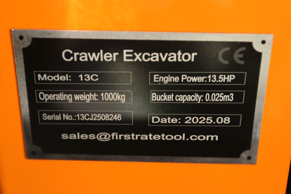 New 2026 MIVA mini Crawler excavator model VA13C w/ thumb, tracks, 13.5 HP engine. Hours reading less than one hour.