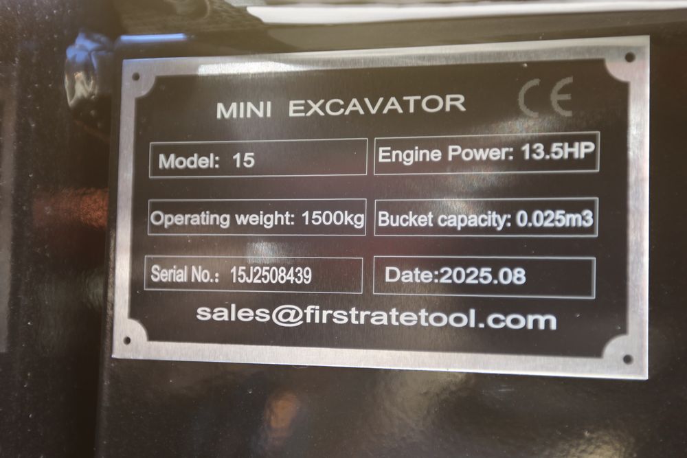 New 2026 MIVA Crawler excavator model VA15 w/ thumb, tracks, 13.5 HP engine. Hours reading less than one hour.