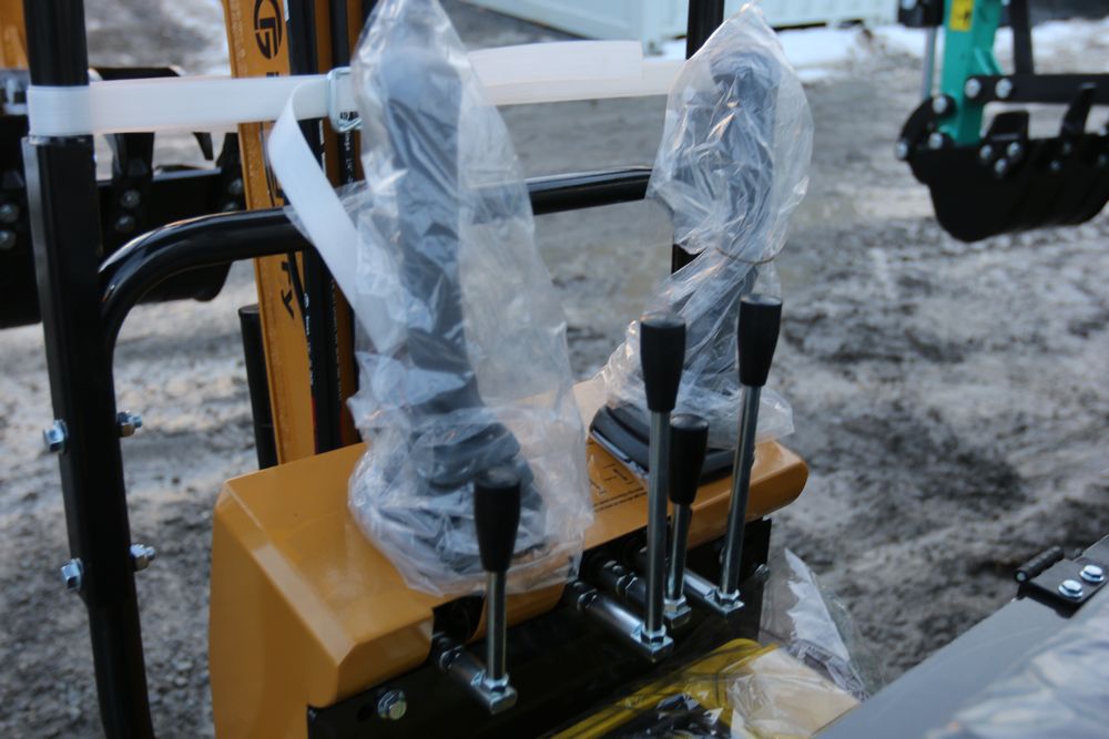 New 2025 CFG Industrial gas powered mini Excavator model H12R with 420cc gasoline engine with EPA, bucket, 4' long tracks, 36.5" wide base, 6" wide tracks, canopy, hydraulic boom & bucket controls, dozer blade. Hours reading less than 1 hour.