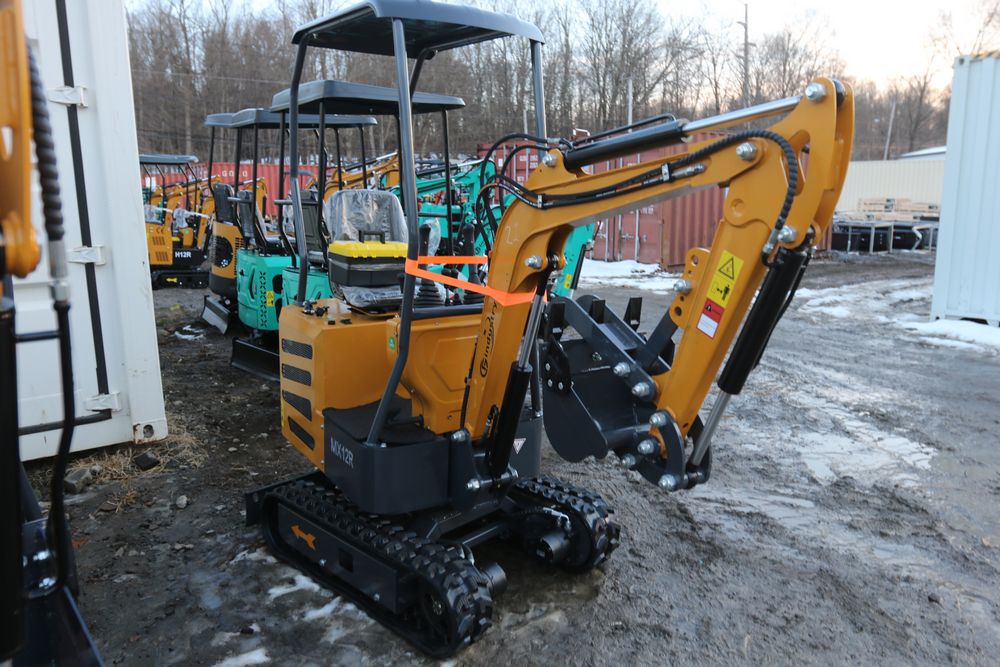 New 2025 CFG Industrial MX12R Mini Excavator with a 420CC gas engine, dozer blade, bucket, pilot control’s, and digital gauges. Hours reading less than 1 hour.