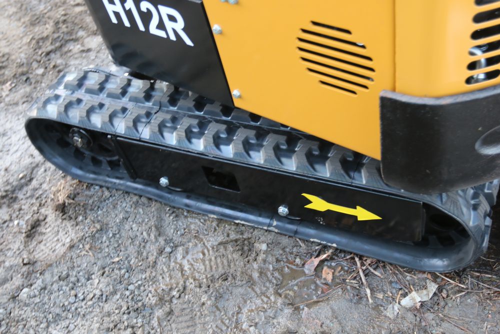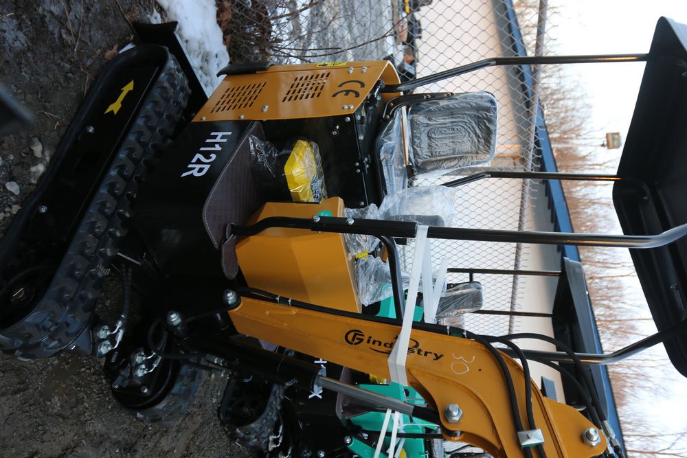 New 2025 CFG Industrial gas powered mini Excavator model H12R with 420cc gasoline engine with EPA, bucket, 4' long tracks, 36.5" wide base, 6" wide tracks, canopy, hydraulic boom & bucket controls, dozer blade. Hours reading less than 1 hour.