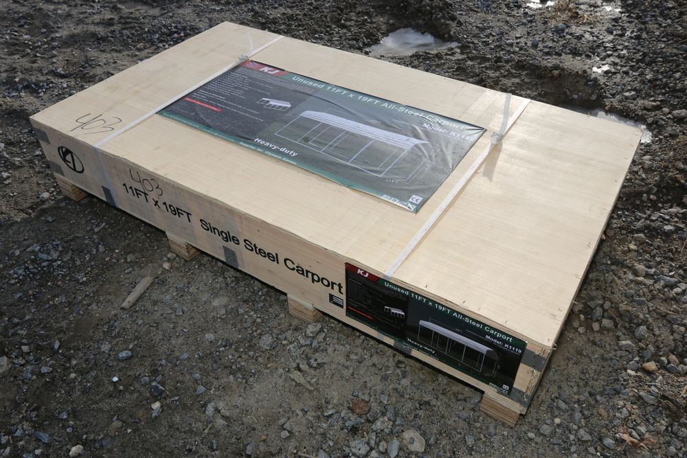 New KJ All-steel carport, 11'Wx20'Lx9'T, model K1119, in wood crate.