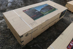 New livestock metal shed, 11'Tx12'Wx25'L, model K2512, in wood crate.