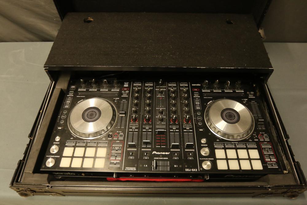Pioneer DDJ-SX2 4-Channel Professional DJ Controller with Carrying Case. Includes a 4-channel DJ controller with pads for enhanced performance and various controls for versatile mixing. Comes with a sturdy carrying case for protection and transport. Pickup only.