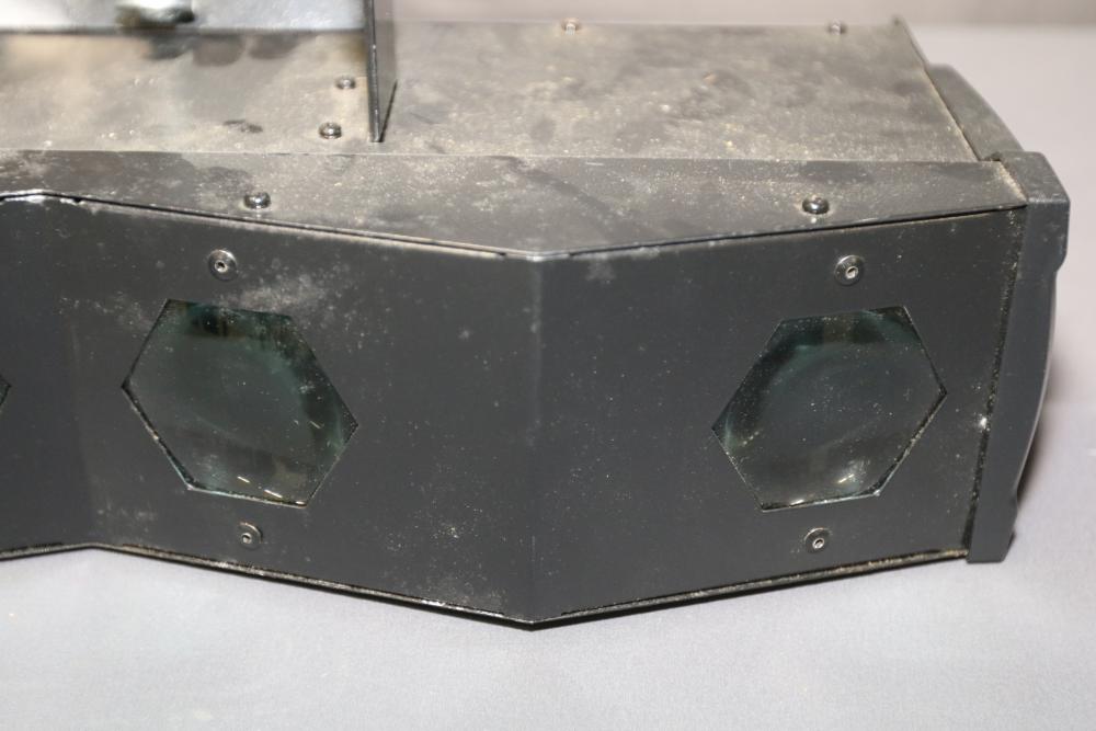American DJ Majestic LED DMX-512 Moonflower Light. Features DMX-512 control, built-in sound activation, and multiple outputs on the rear panel for versatile operation. Includes mounting bracket. Requires a standard power connection and is designed for lighting effects. Pickup only.