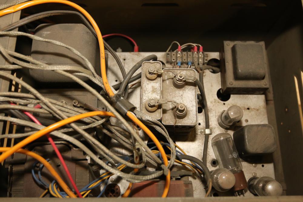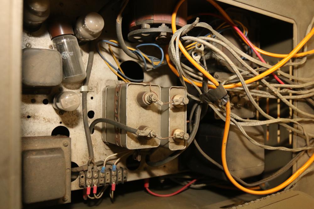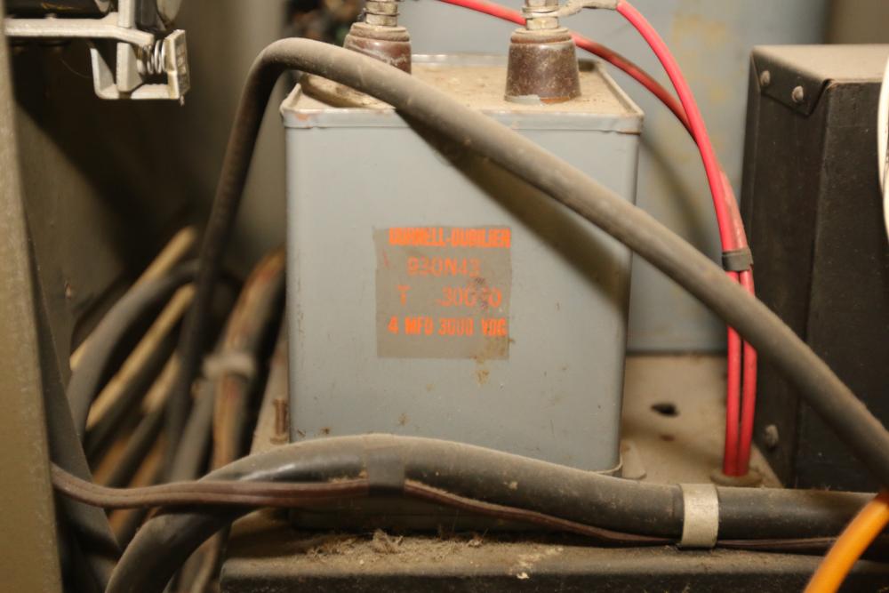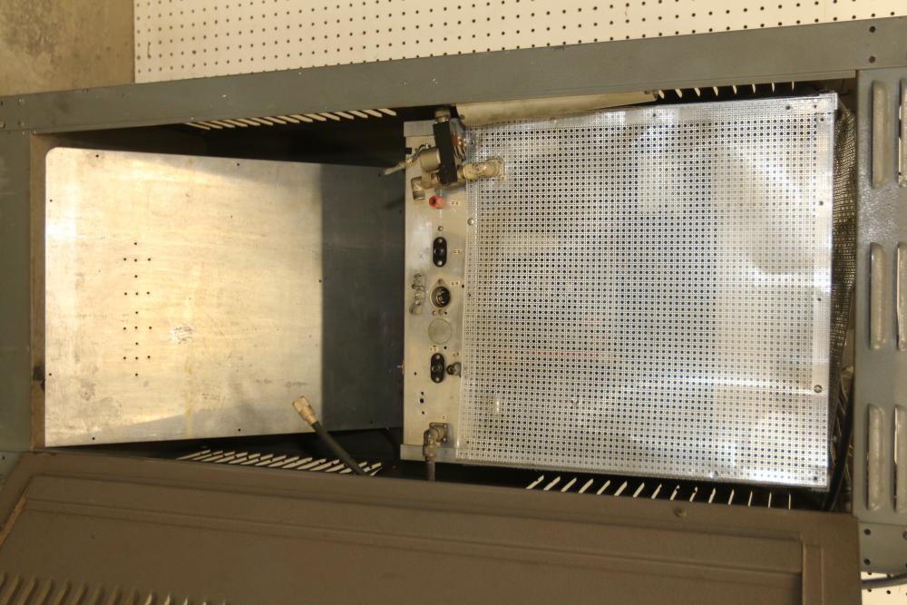 Homebrew Ham Radio Transmitter with Unknown Module Featuring a Vintage Thordarson Choke. Includes dual cabinets, multiple analog gauges, toggle switches, knobs, wiring, and internal components. Vintage Thordarson choke model clearly labeled within housing. Untested and sold as-is. Ideal for enthusiasts or restoration professionals. Pickup only.