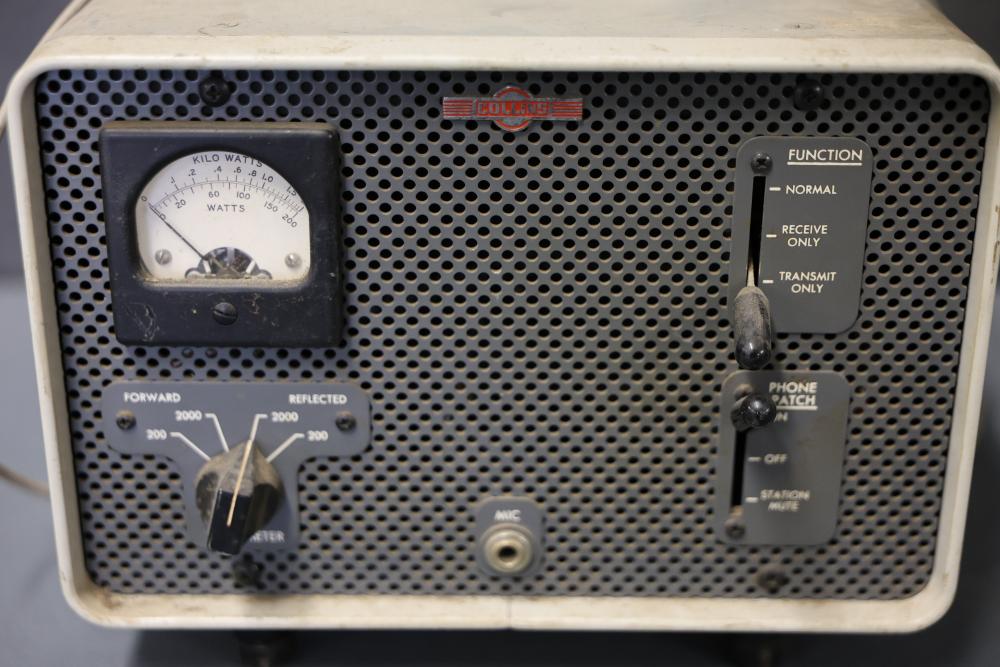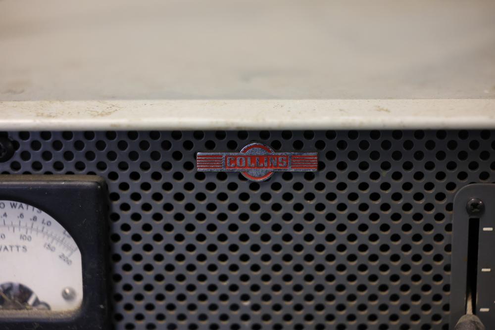Collins 312B-4 Winged Emblem Vintage Ham Radio Station Control. Features a front panel with functional controls including a meter for wattage and knobs for settings adjustment. Rear panel includes input and output connections as well as a serial number identification. Unit shows wear consistent with age and use. Pickup only.