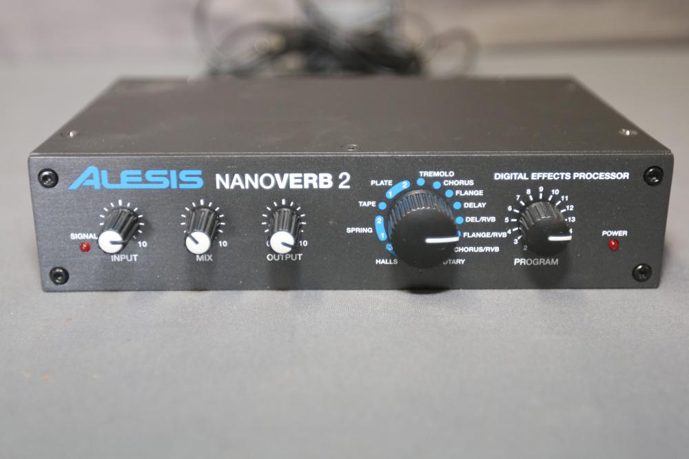 Alesis Nanoverb 2 Music Effects Processor. Includes the processor unit, power adapter, and manuals. Features various digital effects with intuitive controls including input, mix, program, and output dials. Comes in the original box. Pickup only.