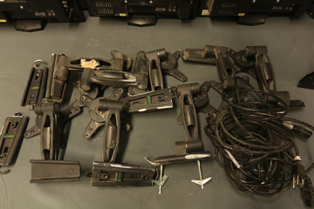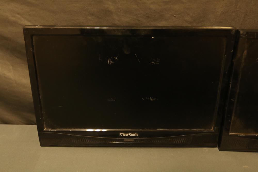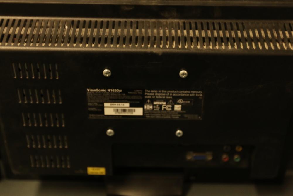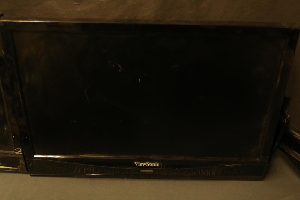 Quantity of 3 ViewSonic N1630W 15.6 inch 720p LCD TVs and power supply cords with Chief TS118SU Small Thinstall Dual Swing Arm Wall Display Mount. The wall display mount is missing some hardware. Includes multiple wall mount brackets. Pickup only.