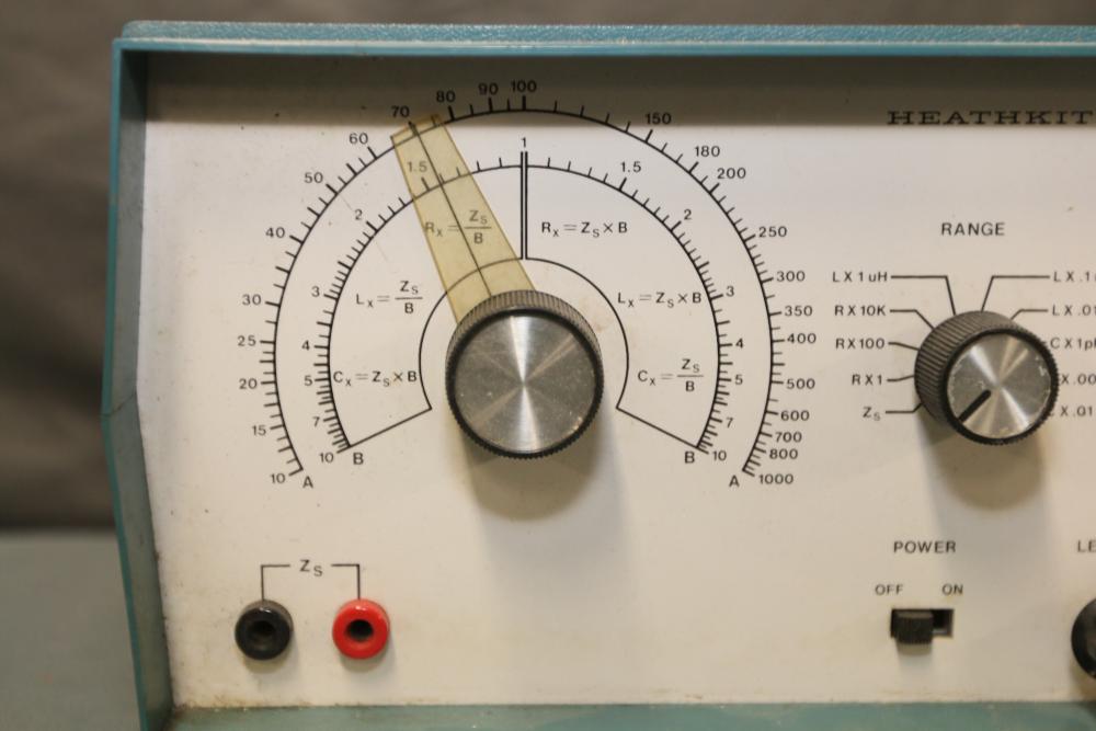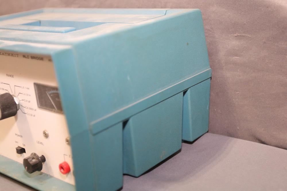 Heathkit IB-5281 RLC Bridge Tester and Heathkit IM-5284 Multimeter. The IB-5281 is designed for measuring resistances, capacitances, and inductances over a range of values. The IM-5284 is a multimeter capable of measuring voltage, current, and resistance. Both units show some signs of use and wear. Pickup only.