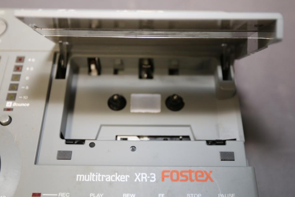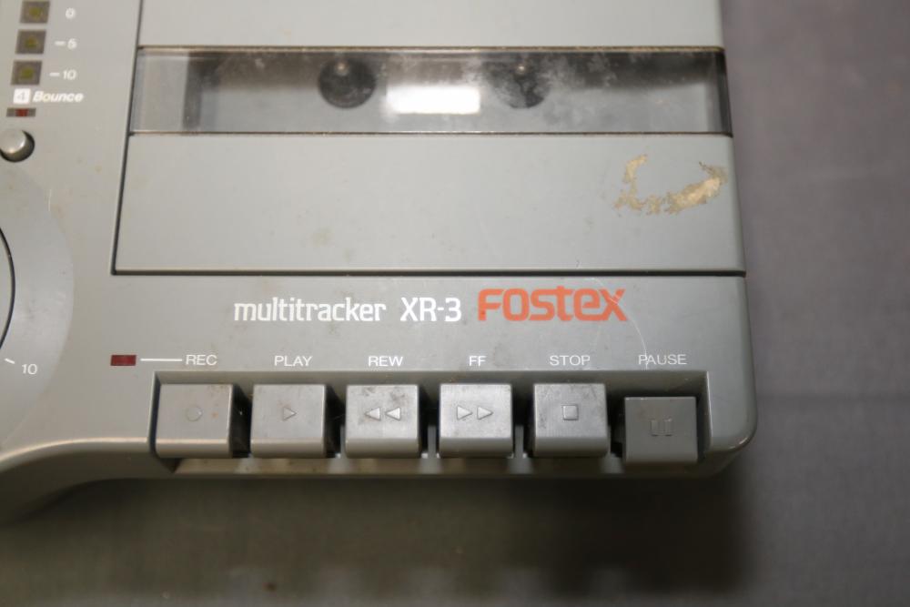 Fostex XR-3 Audio Multitracker featuring multiple input/output ports, manual controls, and a cassette deck. The unit allows for audio mixing and recording. Some signs of wear are present. Pickup only.