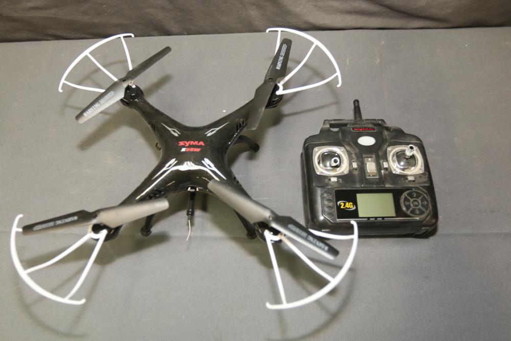 Syma X5SW 4CH 2.4G Remote Control Quadcopter with Remote. Includes a quadcopter with propeller guards, 2.4G remote control, extra propellers, and instruction manual. Designed for ages 12 and up. Pickup only.