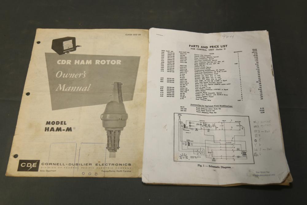 Antenna Rotor with CDR TR-44 Control Module, CR TR-4 Control Module, and CR HAM 115 Control Module. Includes the rotor unit, three control modules, and owners manuals. Units display signs of use, cosmetic wear, and some wiring visible. Functionality has not been tested. Pickup only.