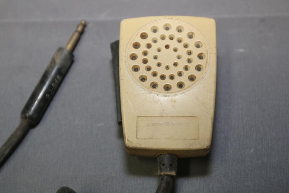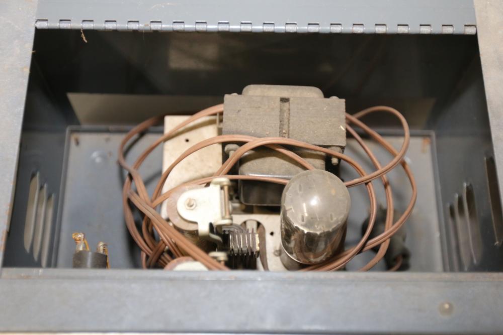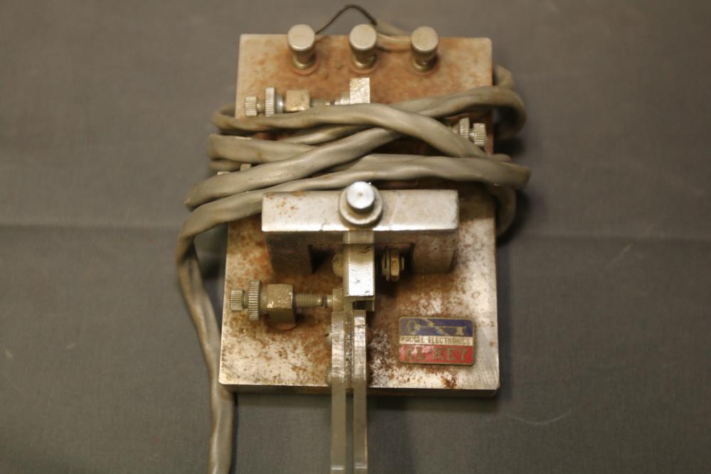 Vintage Electronics Including Homebrew Ham Radio Module and General Electric Meters. Includes homebrew ham radio module, Tram microphone, General Electric VBM38 portable AC voltmeter, General Electric A200AE1 portable DC voltmeter, Poucel Electronics El-Key single-lever CW paddle, E.F. Johnson 250-38 directional coupler indicator, General Electric V58EI portable AC voltmeter, General Electric Type DO-71 DC milliamperes meter, and Astatic 531 microphone. Pickup only.