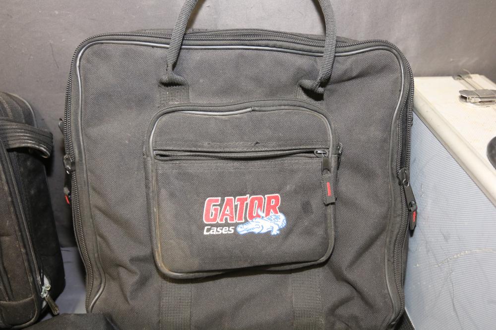 Bags and carrying cases by Gator Cases, Avenues, and Worth. Includes various sizes and styles, featuring materials designed for portability and protection. Items appear to include soft and hard cases along with zipper closures and reinforced handles for durability. Pickup only.