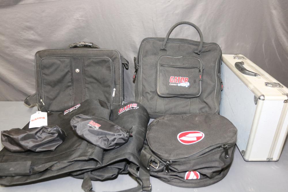Bags and carrying cases by Gator Cases, Avenues, and Worth. Includes various sizes and styles, featuring materials designed for portability and protection. Items appear to include soft and hard cases along with zipper closures and reinforced handles for durability. Pickup only.