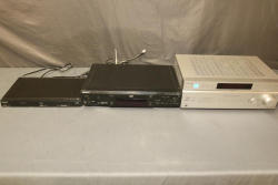 P/F Sony STR-K6800P FM Stereo/AM-FM Receiver, Sony DVP-S550D CD/DVD Player (currently not functional), and Philips DVP3962 DVD Player. All items show signs of use but include essential connections. Pickup only.