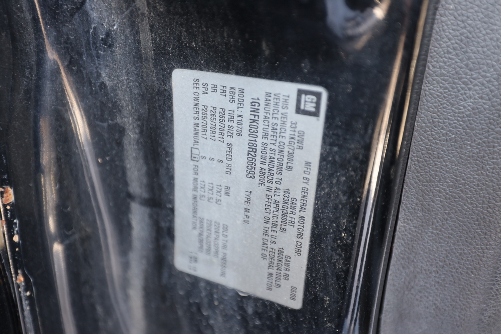 2008 Chevrolet Tahoe. VIN: 1GNFK03018R266593. Body: SUV 4D. Engine: 5.3L V8 SPFI Flex Fuel. Odometer reading: 171272. Seller reports: Rotten Frame, Check engine light, fuel leak, sat for 3+ years, yellow lightbar, 4WD. Title & key available.