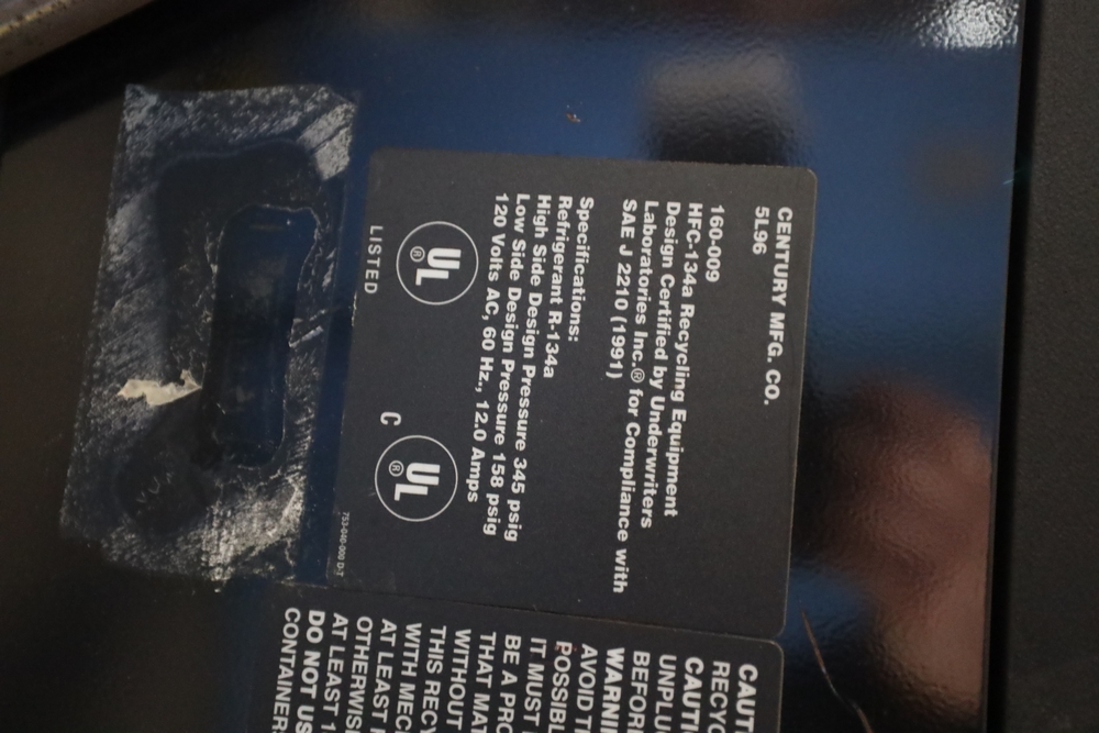 Snap on/Century Koolkare AC machines. SN: 516A0119 & F565155. Operating condition: No. Parts only. Parts only, missing parts, non operational, R-134A