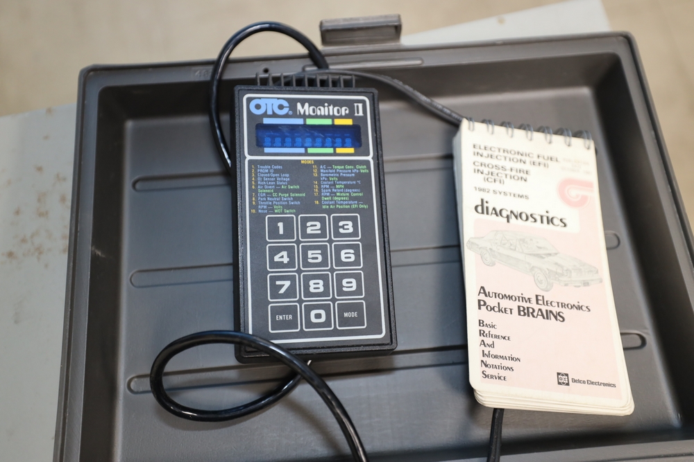 1982 OTC Monitor 2 (model 3455) 0BD-1 Diagnostic tool. SN: AB2002021. Operating condition: Unknown. Owners manuals. Vintage technology from the early 80s, obsolete