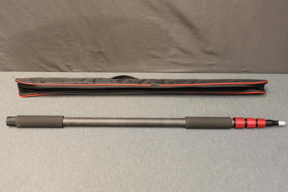 DigitalFoto Solution Limited BM01C Extendable Carbon Fiber Microphone Boompole. Features a lightweight carbon fiber construction, adjustable extensions with red twist locks, and foam grips for added comfort during use. Includes a protective carrying case for easy transportation and storage. Pickup only.