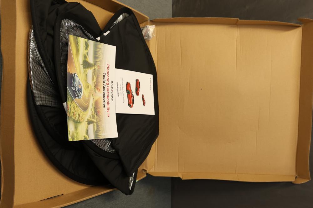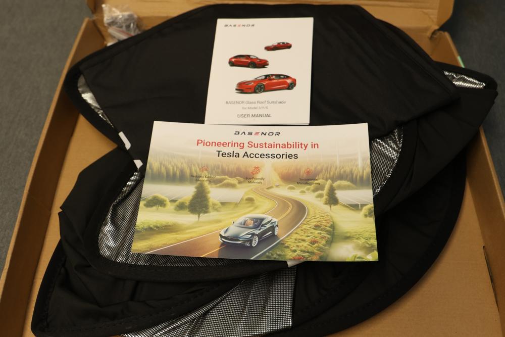 Basenor CA298 Glass Roof Sunshade for 2022-2026 Tesla Model S. Specifically designed for the Tesla Model S model years 2022 to 2026. Includes components shown in original packaging, with documentation and instructions present. Box shows signs of wear but product condition is unused. Pickup only.