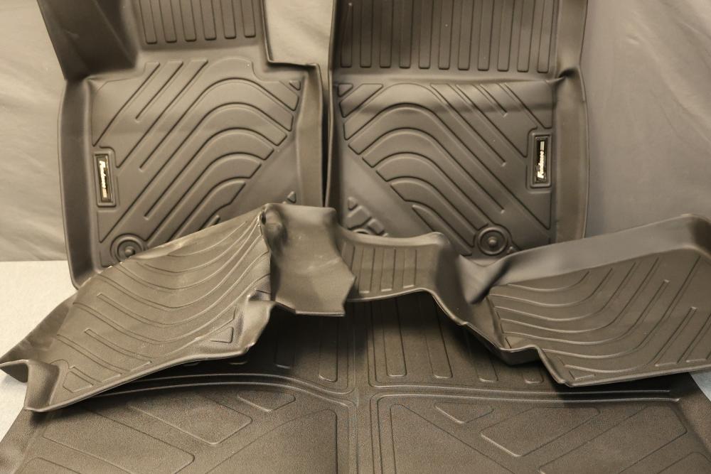 Fendazee Automobile Floor Mat Set. Featuring mats designed to fit inside vehicles, specific make and model compatibility not stated. Includes multiple mats crafted with durable material and designed with ridges for practicality. Original packaging is worn, but mats are present and in usable condition. Pickup only.