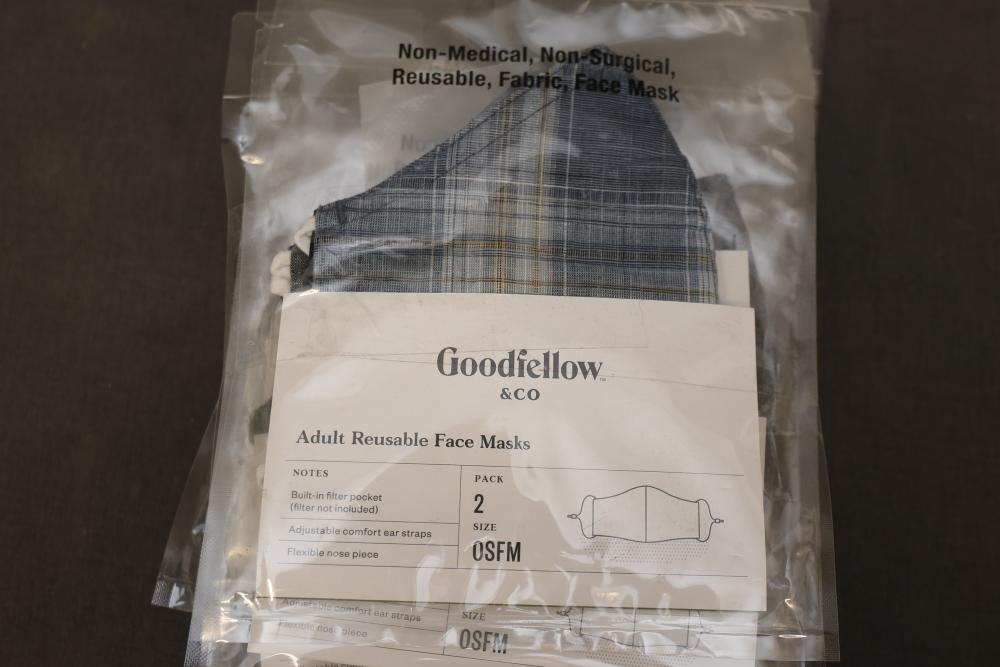 Goodfellow and Co. Reusable Adult Facemasks - 30 Count. Includes non-medical, non-surgical, reusable, fabric facemasks. 15 packs of 2 in total. Each pack contains multiple individually wrapped masks with instructions for use. Suitable for adult sizes. Pickup only.
