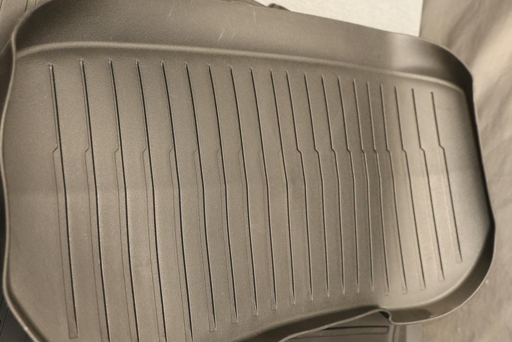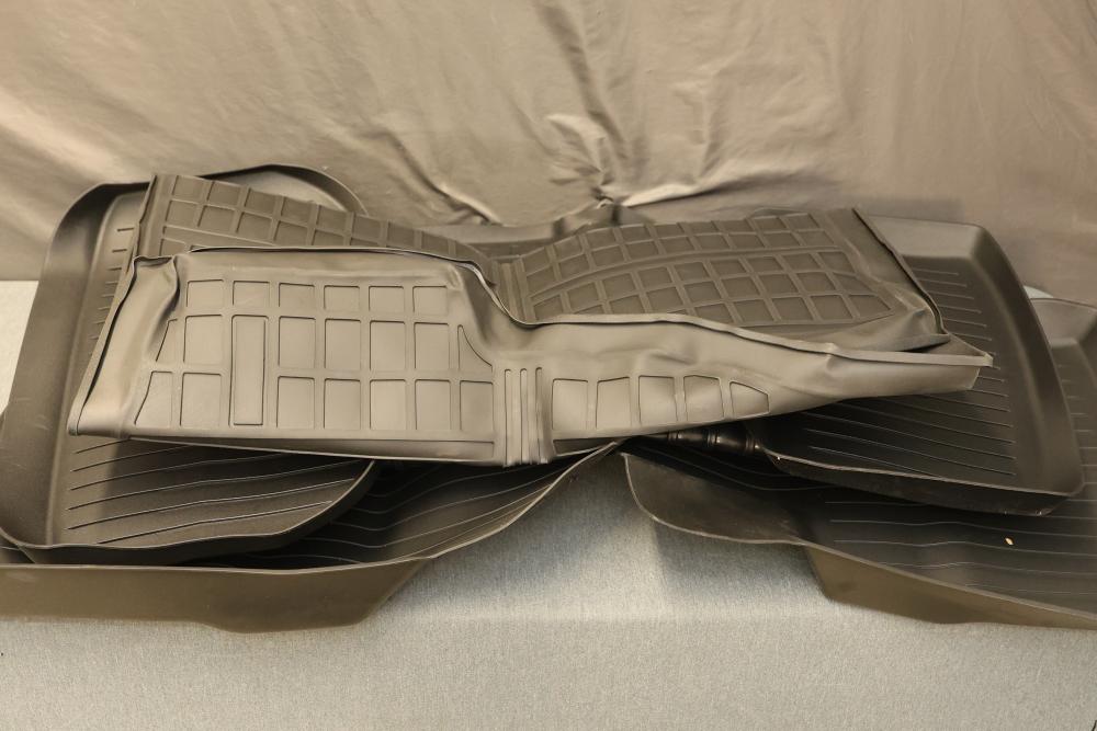 Yitamotor CIFMFM-1197 Floor Mat Set for 2024-2025 Tesla Model 3 Highland. The set includes durable floor mats designed to fit the interior of the specified vehicle models. The mats provide all-weather protection and feature a non-slip surface. They are black and exhibit molding to conform to the vehicle's floors. Pickup only.