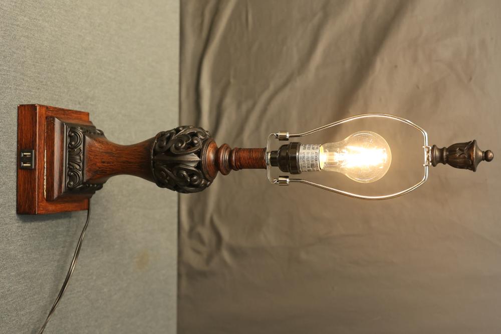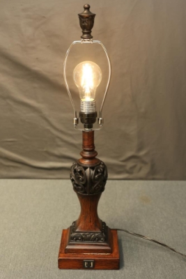 Wooden Tiffany-Style Table Lamp in Dark Bronze Finish with Victorian-Style Base containing 2 USB Ports. Measures approximately 23 inches high. Pickup only.